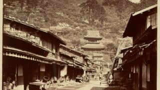 No.4 麹屋町(1860年) 今回は、1860年(万延元年)頃に撮影された長崎市麹屋町の貴重な古写真をご紹介します。撮影者は、幕末の日本を数多く記録した写真家、フェリーチェ・ベアトら。 写っているのは興福寺へと続く通りです。通りの両側には商店が並び、会話を楽しむ大人たちや店先に座る子供たちの姿など、当時の長崎の日常が鮮明に記録されています。現在の風景との比較写真はまだ撮影できていませんが、まずはこの一枚から、かつての長崎の「時層」と人々の息遣いを感じてみてください。 2025.11.22