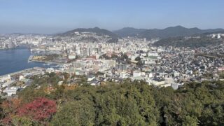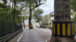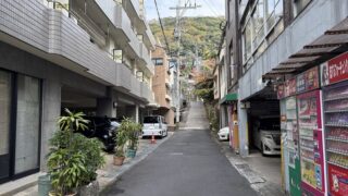 No.2:立山1丁目(2025年11月) 地図を眺めていてふと思い立ち、スクーターで長崎市立山の坂の頂上を目指しました。 諏訪神社の裏手にあたる立山1丁目。そこで私を待っていたのは、眼下の景色以上に圧倒的な存在感を放つ「道の真ん中に立つ大樹」でした。目的の場所へ向かう途中で出会った、予期せぬ風景との出会い。長崎の坂道には、こうした不思議な光景が日常の中に溶け込んでいます。 2025.11.20