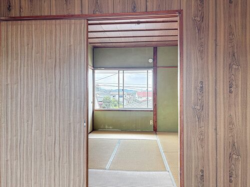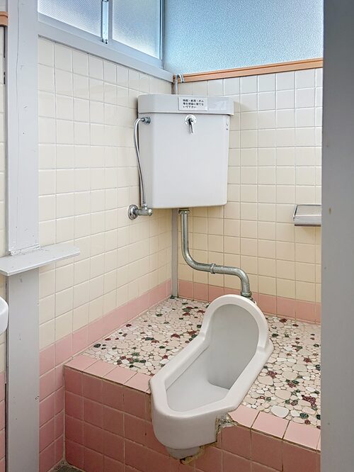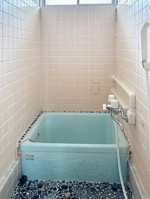 久しぶりに目にする洗い出し仕上げのお風呂とトイレが、これまでに流れた時間を感じさせるアパートです。